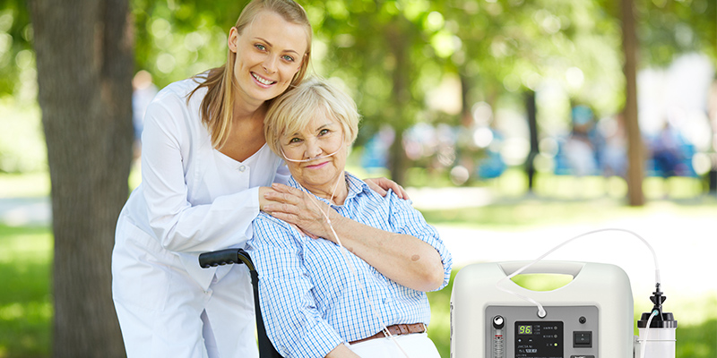 Oxygenii therapia domi est una ex magnis rationibus curationis hypoxaemiae extra nosocomium.